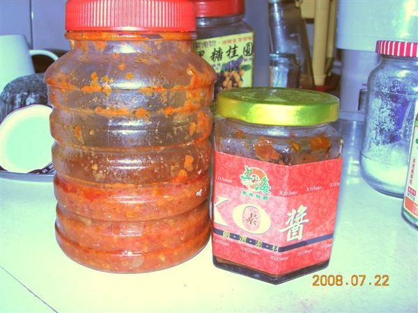 [右邊就是上次爸媽在高雄買的超好吃素食XO醬,一小匙就很夠味]